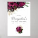 Vintage marsala (burgundy) and gold shabby-chic flowers bridal shower welcome poster with accents of black and plum.