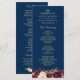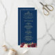 Burgundy Marsala Floral Navy Blue Wedding Program Card.