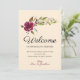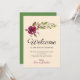Add this special welcome card to welcome gifts for your out of town guests. This wedding welcome card offers beautiful burgundy flowers and greenery on a cream coloured background. The stylish watercolor graphic appears across the top of the vertical invitation. Custom text allows you to add a personal welcome message to your family and friends.
