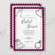 Fun modern black & white design bridal shower invitation with hand drawn wedding graphics in each corner. Burgundy accent colour. Perfectly framed with a white scalloped edge with black outline. Coordinating fonts add to the beauty of this design.