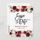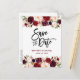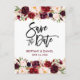 Modern Brush Script, Watercolor Burgundy Marsala Floral, Save The Date Engagement Postcard
