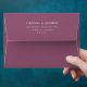 Burgundy Modern Floral Envelope. Make a bold statement with this burgundy envelope, adorned with an elegant return address and a coordinating boho-chic pattern inside. Its rich colour beautifully complements the invitation suite, adding a touch of romance and sophistication to your wedding correspondence. Showcase your attention to detail and invite your guests in style—every element counts.
