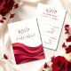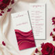 Coordinate your wedding stationery with this Burgundy Modern RSVP Card, designed to perfectly complement your matching invitation suite. Featuring the same layered abstract wave design, this piece embraces one of 2026’s most sought-after wedding trends: rich burgundy palettes paired with elegant, drapery-inspired movement seen in flowing fabric installations and romantic ceremony backdrops.