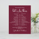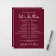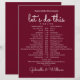 This stylish wedding schedule-timeline can be personalised with your wedding details set chic white lettering on a burgundy background. Designed by Thisisnotme©