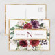 Gorgeous burgundy flowers with names of bride and groom with monogram in burgundy. Gold trim for elegance. Just beautiful.