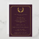 An elegant, modern, unisex graduation invitation for high school, college, university or for post grad degrees. Featuring a foil pressed ticket shaped border and a laurel wreath surround for the graduate’s initial(s). The text is also foiled and completely customisable, so the font size, style and placement can be changed. The back has been left plain, but replace it with a photograph if you prefer. The design is available in other colours in my store, as well as in a non-foil version.