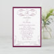 This wedding invitation features a simple vintage scroll design with a letter monogram in a burgundy colour, additional scroll designs at the bottom corners, and a matching burgundy border. The backside of the invitation is solid burgundy. The text is easily customised. Simple and elegant! See the matching products.