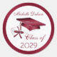 Class of any year, Burgundy red mortar cap and diploma Graduation round Sticker. Easy to customise - just put your name and graduation year.
