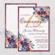 This elegant and artsy quinceañera birthday party invitation is perfect for your special day. It features fall and autumn, burgundy red, plum purple, navy blue, and mustard yellow hand-painted watercolor floral bouquets on top of a faux printed sparkly wine red glitter border frame and a simple white background. It's modern, chic, pretty, unique, and trendy. Stylise with this unique and one-of-a-kind design hand-painted by the artist of the brand La Femme, Rachel Matheney.