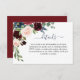 Burgundy Navy Blue Blush Floral Wedding Details Enclosure Card.