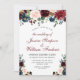 Burgundy Navy Blue Blush Watercolor Floral Wedding Invitation