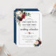 Burgundy Navy Blue Floral Dotted Frame Wedding Invitation