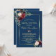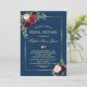 Burgundy Navy Blue Floral Gold Frame Bridal Shower Invitation