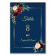 Burgundy Navy Blue Floral Golden Wedding Table Number