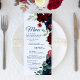 Burgundy & Navy Blue Flowers Wood Wedding Menu