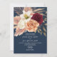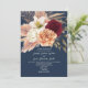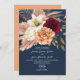 Invite your guests in style with this elegant burgundy and navy blue floral wedding invitation. Featuring watercolor roses in burgundy, peach, and ivory with pampas grass and greenery on a rich navy background, this design is perfect for fall or winter weddings. Personalise with your names, wedding details, and location to create a timeless keepsake. Matching RSVP cards, details cards, menus, programs, save the dates, and welcome signs are available in our collection for a fully coordinated wedding suite.