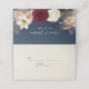 Guide your guests to their seats with these elegant burgundy and navy blue wedding place cards. Featuring watercolor roses in burgundy, ivory, and peach with pampas grass and greenery on a deep navy background, this design adds a romantic touch to your table setting. Perfect for fall or winter weddings, rehearsal dinners, or anniversary celebrations. Personalise with guest names and table numbers for a beautifully coordinated reception. Matching invitations, menus, programs, table numbers, and welcome signs are available in our collection for a complete wedding suite.
