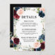 Elegant and modern romantic geometric watercolor floral wedding details card features a beautiful burgundy / marsala , blush pink, peach , navy blue watercolor roses with matching foliage on navy blue rustic wood background and gold frame. Perfect for a fall / midsummer wedding. Please find more matching designs and variations from my "blissweddingpaperie" store. And feel free to contact me for further customisation or matching items
