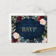Burgundy Navy Blush Floral Gold RSVP Postcard