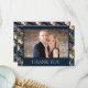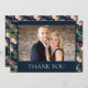 Elegant burgundy and blush pink watercolor floral on navy blue wedding Thank You photo card. Personalise with your own photo and text and add your handwritten message on the back. Contact us for help with customisation or matching products.