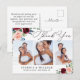 Stylish and whimsical vertical card to thank your guests for being a part of your wedding day. This customisable thank you postcard features white modern calligraphy overlay. This design is also available in other cards.