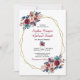 Burgundy Navy Floral Gold Frame Wedding Invitation