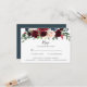 Designed to coordinate with our burgundy navy wedding collection, this elegant rsvp reply card features a watercolor burgundy navy floral and modern design. Personalise this card with response date and food/song choices.