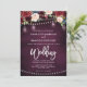 Burgundy Navy Floral Rustic String Light Wedding Invitation