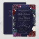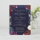 An assembly of deep burgundy red and purple flowers adorned with shimmering silver outlines against a dark rich navy blue watercolor.