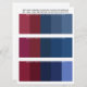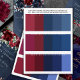 Three burgundy navy jewel tone wedding colour palettes featuring ruby, garnet, merlot, navy, sapphire, cornflower blue on one card that you can carry with you making it easy to compare colours and master colour flow and continuity when selecting your materials and supplies for your wedding.