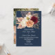 Invite your guests with style using this burgundy and navy blue wedding invitation featuring watercolor roses in burgundy, peach, and ivory with pampas grass and greenery. The front showcases your wedding details on a rich navy background, while the back includes a photo of the couple and a convenient QR code for RSVP. Perfect for fall or winter weddings, this modern design combines elegance with practicality. Personalise with your names, wedding details, and photo. Matching save the dates, RSVP cards, menus, programs, details cards, and welcome signs are available in our collection for a coordinated wedding suite.