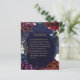 A burgundy navy wedding invitation featuring an assembly of navy blue and burgundy peony flowers with eucalyptus greenery and gold elements that make the invitation sparkle.