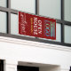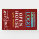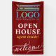 Marsala red open house banner for a realtor with bold white and yellow fonts. Add your logo! Welcome is written in a swirly script at the bottom. Dark red outdoors banner for your realtor business with your logo and open house, agent inside! and welcome written beneath in white and yellow against a burgundy background.