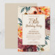 Elegant burgundy and orange watercolor floral with gold glitter on a tan 75th birthday party invitation. Contact us for help with customisation or to request matching products.