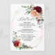Burgundy Peach Burnt Orange wedding details card featuring elegant bouquet of burgundy, red, Marsala, maroon , Peach , Salmon pink, coral , and blush colour rose flowers buds and sage green eucalyptus leaves. Please contact me for any help in customisation or if you need any other product with this design.