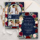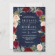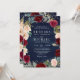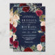 Burgundy Peach Floral Navy Blue QR Code Wedding Invitation