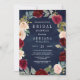 Burgundy Peach Floral QR Code Navy Bridal Shower Invitation