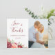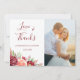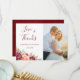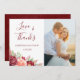 These wedding thank you cards feature watercolor burgundy and peach roses and foliage. Personalise with your own wedding photo, names and wedding date text.