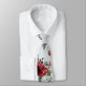 A burgundy wedding neck tie featuring a watercolor-painted deep red burgundy peonies with silvery sage greenery against a solid light blue background.