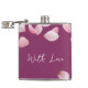 Elegant and stylish, this vinyl-wrapped flask features a rich burgundy background adorned with delicate pink petals and the heartfelt phrase "With Love." A perfect gift for weddings, anniversaries, or any special occasion, this chic and portable flask adds a touch of sophistication to your celebrations. Ideal for anyone who appreciates unique and personalised drinkware.