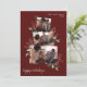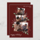 Burgundy Photo Collage with Berries and Greenery Holiday Card