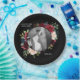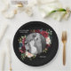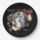 Burgundy Photo Floral Elegant Wedding Paper Plate