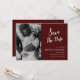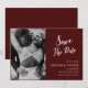 This elegant Photo Save the Date - features white handwritten and script and place for your photo on the burgundy background. The reverse side of the invitation is burgundy. You can add your own photo or leave this photo in a classic style. If you need help processing your photo, please write to me in a message.