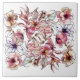 Burgundy Pink and Blue Floral Garland Watercolor Tile