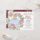 Burgundy Pink Country Rose Wreath Photo Birthday Invitation
