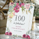 Burgundy Pink Floral 100th Birthday Pedestal Sign