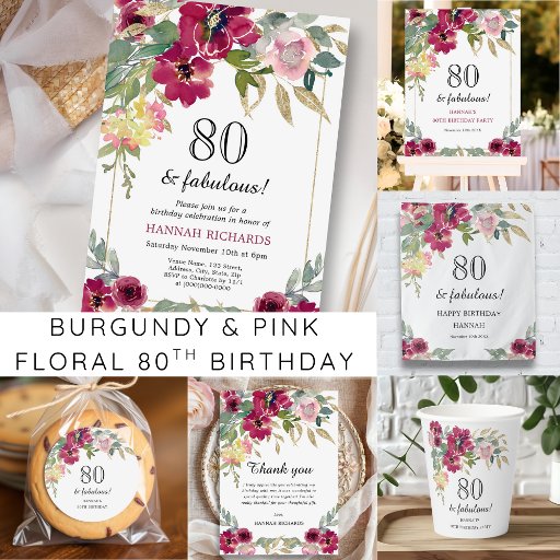 Burgundy Pink Floral 80th Birthday Can Cooler