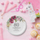Burgundy Pink Floral 80th Birthday Paper Plate