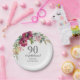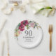 Burgundy Pink Floral 90th Birthday Paper Plate