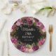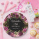Elegant and romantic pink, burgundy, and purple watercolor vintage floral and foliage on black custom 18th birthday party paper plates with gold glitter. Personalised with the name of the guest of honour, her age, and her party date. Contact me for assistance with your customisations or to request additional matching or coordinating Zazzle products for your party.
